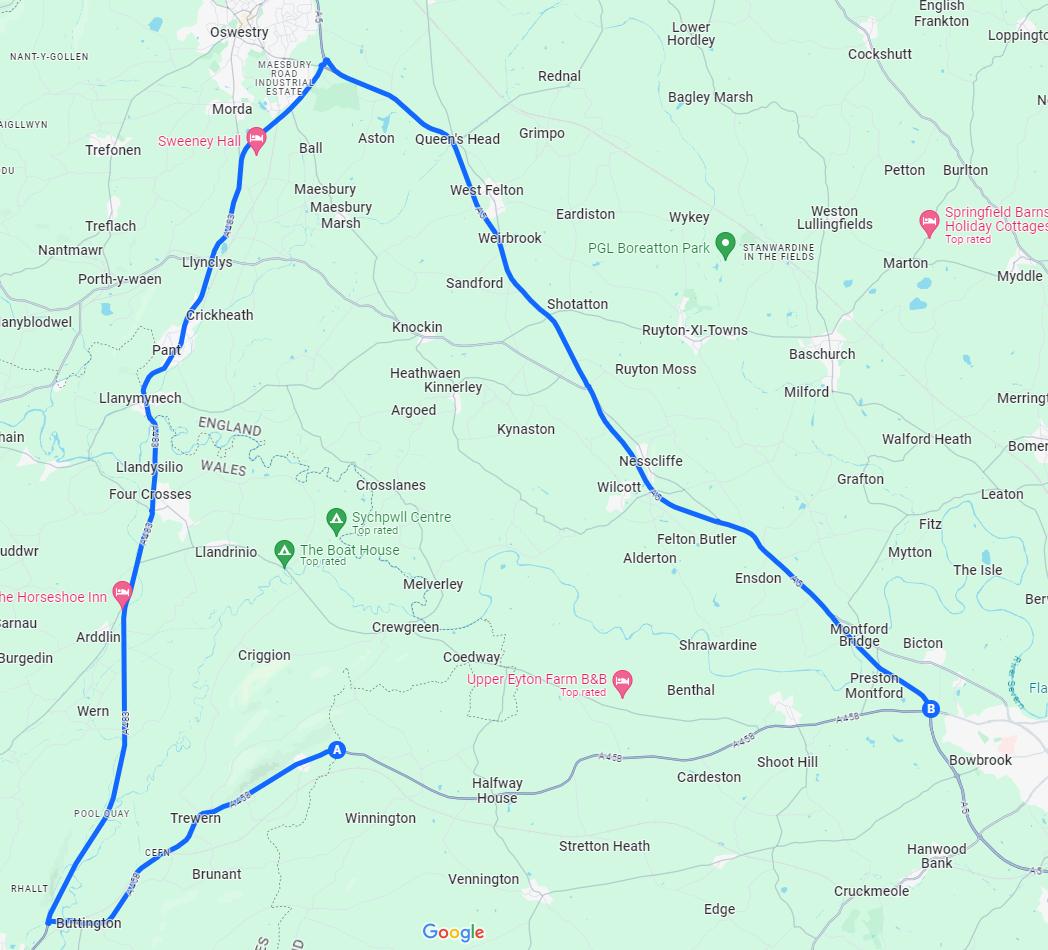 28 March 2024 – A458 fully closed in both directions between the England/Wales border and A458/Rowton Avenue junction.